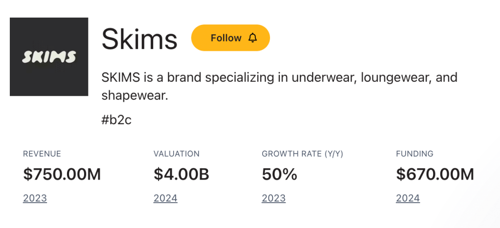 Skims is a solution oriented brand creating the next generation of underwear, shape-wear and loungewear.The company was valued at over $4 billion in July 2023.